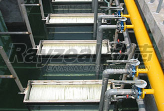MBR膜生物反應(yīng)器(membrane bioreactor),是一種將高效膜分離技術(shù)與傳統(tǒng)活性污泥法相結(jié)合的新型高效污水處理工藝,它用具有獨(dú)特結(jié)構(gòu)的MBR平片膜組件置于曝氣池中,經(jīng)過好氧曝氣和生物處理后的水,由泵通過濾膜過濾后抽出。MBR污水處理與傳統(tǒng)污水處理方法具有很大區(qū)別,通過膜分離裝置代替?zhèn)鹘y(tǒng)工藝中的二沉池和三級(jí)處理工藝。從而得到優(yōu)質(zhì)的出水,解決了傳統(tǒng)污水處理方法的出水水質(zhì)達(dá)不到中水回用要求的問題。MBR膜對(duì)城市生活廢水處理后的水可直接作為市政用水或進(jìn)一步處理作各種工業(yè)用水。