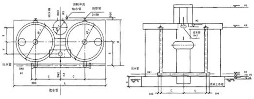 5、表中排水管在±0.00以上接出,根據(jù)用戶要求還可以改為±0.00以下接出:即DLB-100、120、150、200四種規(guī)格的排水管標(biāo)高可改為-0.45m。省去兩個(gè)彎頭,直接接入檢查井,用戶在訂貨時(shí)應(yīng)在合同中注明要求。